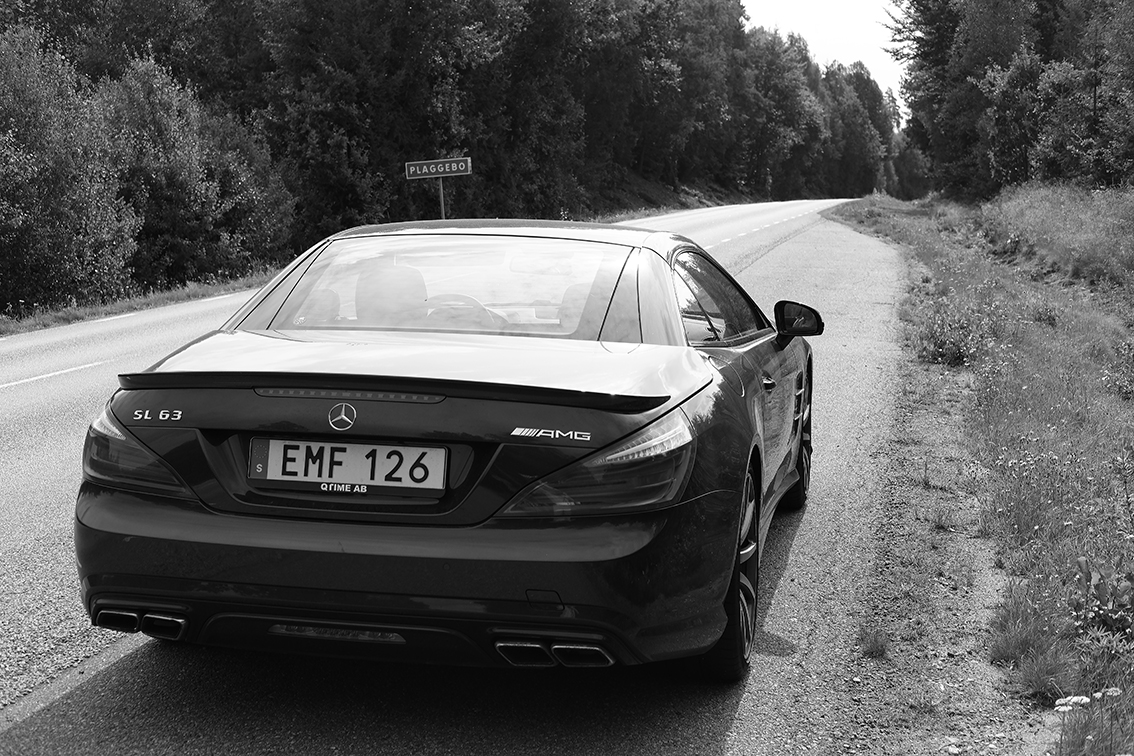 Mercedes-Benz SL63 AMG på en parkeringsficka i Plaggebo