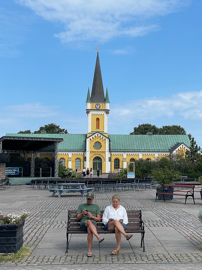 Jag tar en bild på Borgholms kyrka. Byggd i nygotisk stil och invigd 1879. Tar mig inte tid för ett besök i kyrkan denna gång. Det finns många kyrkor på Öland, närmare bestämt 34 stycken som är i bruk. Dessutom några kapell och någon ödekyrka. Resmo kyrka är Sveriges äldsta medan Gärdslösa kyrka som jag besökt vid tidigare tillfälle är en av de bäst bevarade medeltidskyrkorna med kalkmålningar och trappstegsgavel. Kyrkan invigdes 1138. Som barn besökte jag Långlöts kyrka där min mamma konfirmerades och hennes fostersyster, Aina senare var kyrkvärd.