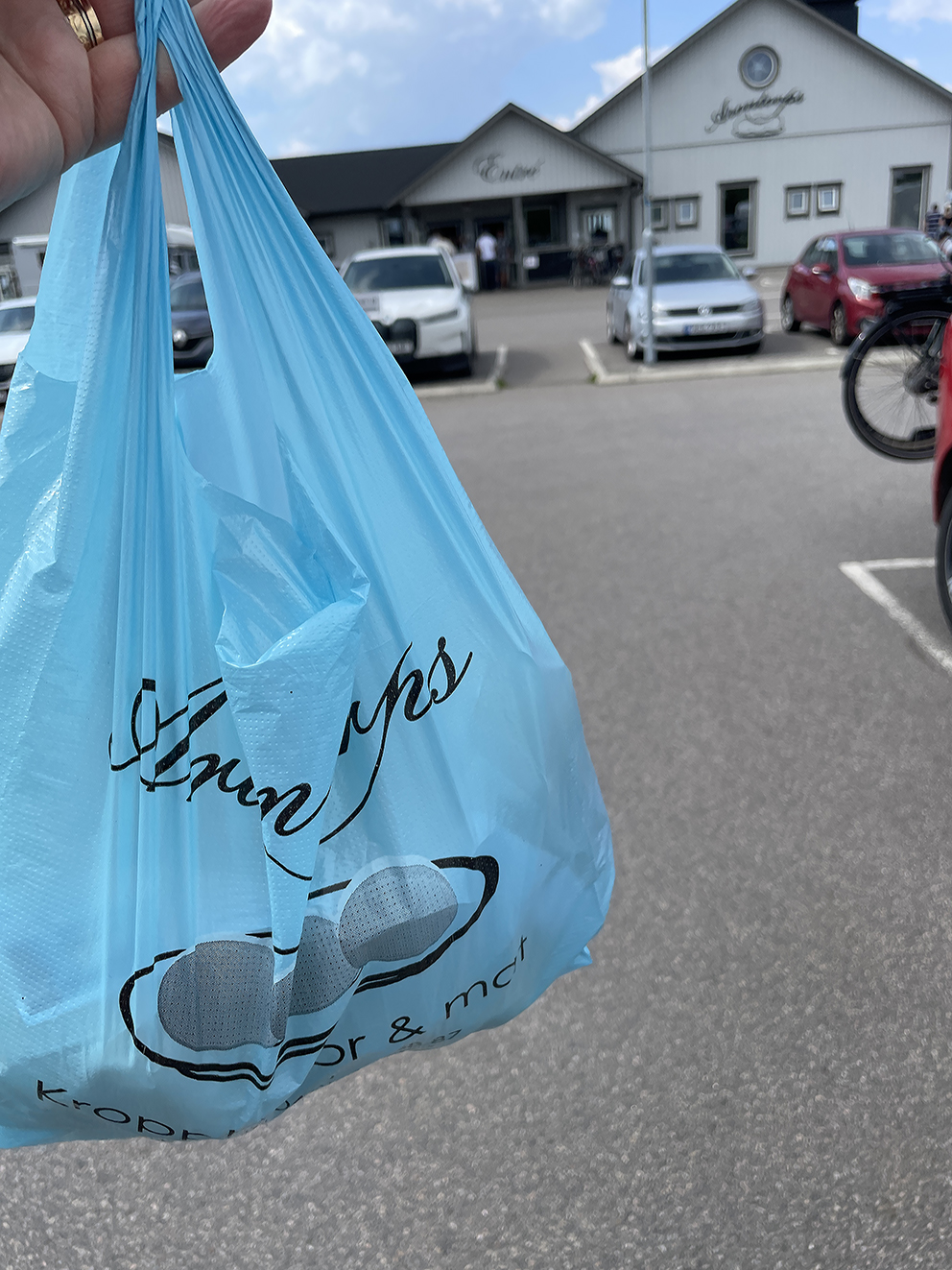 Från Borgholm glider jag vidare i 63:an mot Köpingsvik några minuters resa norr om Borgholm. Stannar till vid ICA och köper öländska ägg innan jag svänger österut mot Laxby. Nu är jag i det område på Öland som jag älskar mest. Östra sidan. Jag svänger söderut mot Egby (som har Ölands minsta kyrka) och vidare ner mot Gärdslösa. Där kommer det en regnskur och jag tvingas fälla upp taket på 63:an innan jag stannar till vid Långlöts gamla diversehandel som alltså inte längre finns kvar. Ett nostalgiskt minne från barndomen. Här kan man också svänga in mot Himmelsberga och hembygdsmuséet och Ismantorps borg. Inte så denna gång, jag har varit där både som barn och som vuxen och det är väl värt ett besök. Jag rullar i stället vidare söderut mot Norra Möckleby där jag tar av mot Färjestaden, passerar Gråborg, en forntida borg och väl framme vid Färjestaden tar jag vänster och når Arontorp. Här har det vuxit upp en veritabel högborg för kroppkakor. Parkeringen är överfull och jag ”tvingas” göra en ”fulparkering” eller en fransk som ni så vill. Kön är lång men relativt snabbt kan jag köpa mina eftertraktade kroppkakor.
