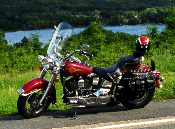 Min första Harley var en Heritage Softail Classic, inköpt ny 1998. Modellen finns fortfarande i Harleys sortiment om än i uppdaterad version. Laser Red Pearl var färgen och den var ”bestyckad” med en Evolutionmotor på 1340 kubik. Motorn skruvad direkt i ramen så att de rätta ”Harleyvibbarna” fortplantade sig i hela motorcykeln. Numera har Harley hemfallit åt balansaxlar och modernare lösningar i allmänhet. På gott och ont. Själv rullar jag numera på en Street Glide från 2010. Större motor, ett annat chassi och låsningsfria bromsar. Dessutom finns farthållare och stereo med CD-spelare (redan förlegat) som jag aldrig använder. Förgasaren på den gamla hojen har ersatts av insprutning på den nya. Ljudet är lägre och mindre ettrigt. Låter inte alls lika fräckt som Heritagen men är vilsammare för öronen. Även det ett utslag av ökad bekvämlighet och en tendens till ständigt öronsus, delvis orsakat av många mils motorcykelåkande utan hörselskydd och olagligt ljud. Brott och straff på en och samma gång kan man säga.