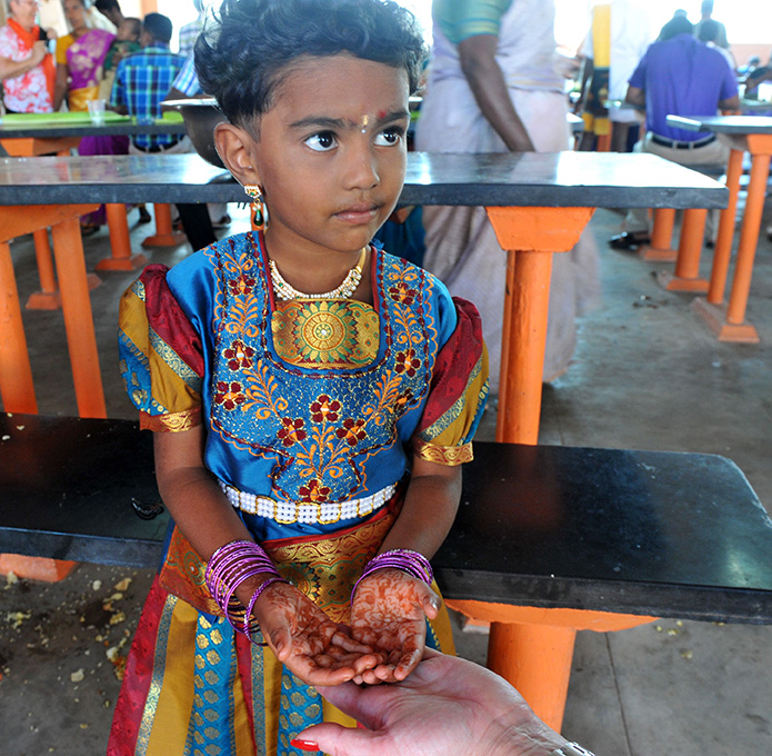 Tyvärr har jag inget namn på flickan som vi träffade på ett bröllop i provinsen Tamil Nadu i södra Indien.