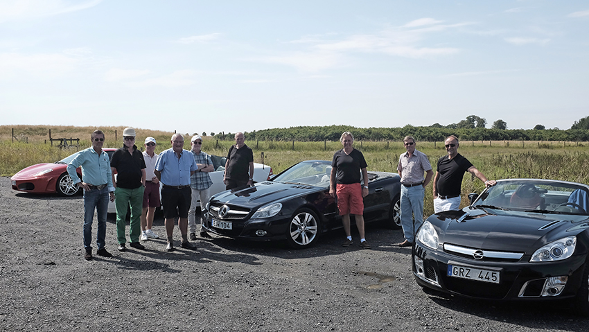 Alla bilar i vår lilla uppställning är olika, spännande och roliga att köra. Ferrarin har outstanding prestanda, min Mercedes SL förmodligen den högsta komforten medan Kenneths Opel är en liten tuffing, lite kantig med manuell växellåda och handmanövrerat tygtak. Mercedes SLK är en mindre variant av SL, lite enklare och kanske också lite mer sportig än SL som rimligen betecknas Gran Turismo (GT).