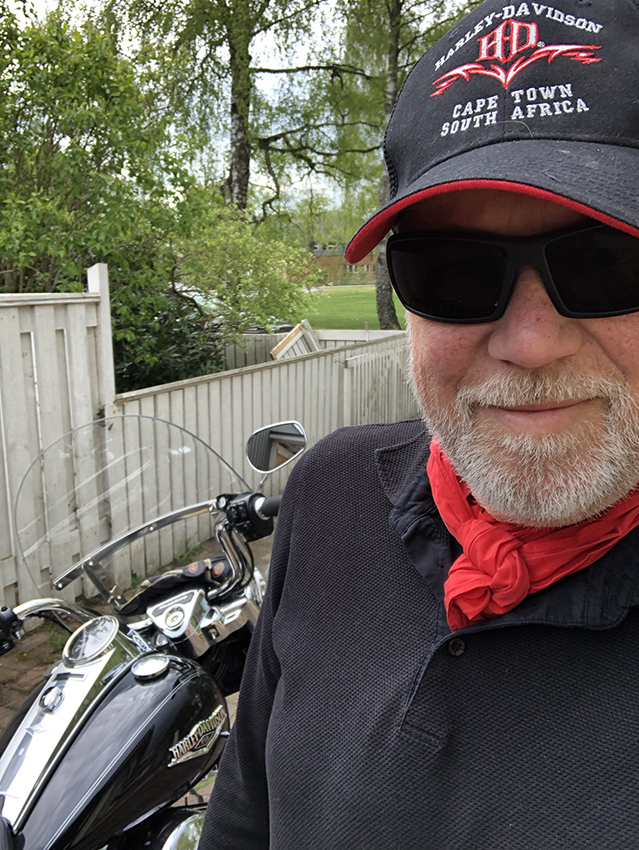 Vi, det var min fru Berit på en Harley-Davidson Dyna T-Sport, kamraterna Ylva och Lars på en Road King och så jag själv på min Heritage Softail Classic från 1998 med Evo-motor. En ”riktig” Harley-Davidson kan man säga med motorn skruvad direkt i ramen och inga fjolliga balansaxlar och sådant strunt.